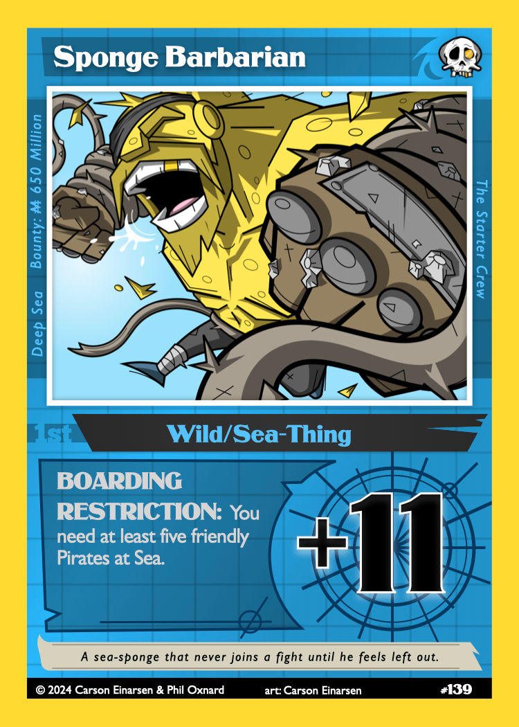 So that’s why I love Sponge Barbarian. He’s the first card where I really felt like all of this research, game theory and play-testing had paid off. We saw a problem and we fixed it in a unique way, exclusive to our game!